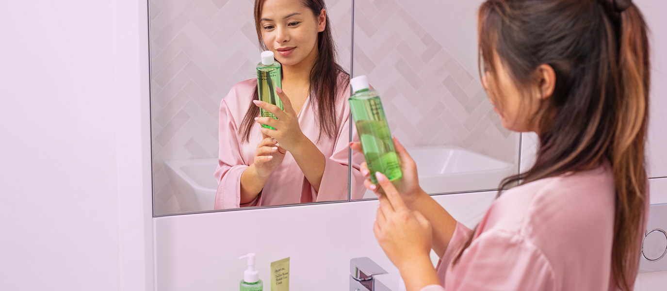 - Mediheal Tea Tree Biome Blemish CICA Toner - tonik łagodzący do skóry wrażliwej: bezzapachowy tonik do twarzy, przywraca naturalne pH przynosząc zauważalne i szybkie ukojenie dla skóry, poprawia poziom jej nawilżenia oraz reguluje poziom wydzielanego sebum. Formuła kosmetyku oparta na cennym wyciągu z wąkroty azjatyckiej, odświeżającego hydrolatu z aloesu i drzewa herbacianego, organicznego ekstrakt z zielonej herbaty oraz glukotolaktonu, który posiada właściwości delikatnie złuszczające.