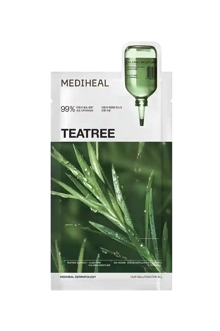 Kojąco-nawilżająca maska w płachcie z olejkiem z drzewa herbacianego. Skoncentrowana formuła esencji, którą nasączono maskę, została wzbogacona o innowacyjny kompleks składników aktywnych opartych na: olejku z drzewa herbacianego, ekstrakcie z róży jerychońskiej, trehalozie, pantenolu, olejku z bergamotki oraz wodzie morskiej.