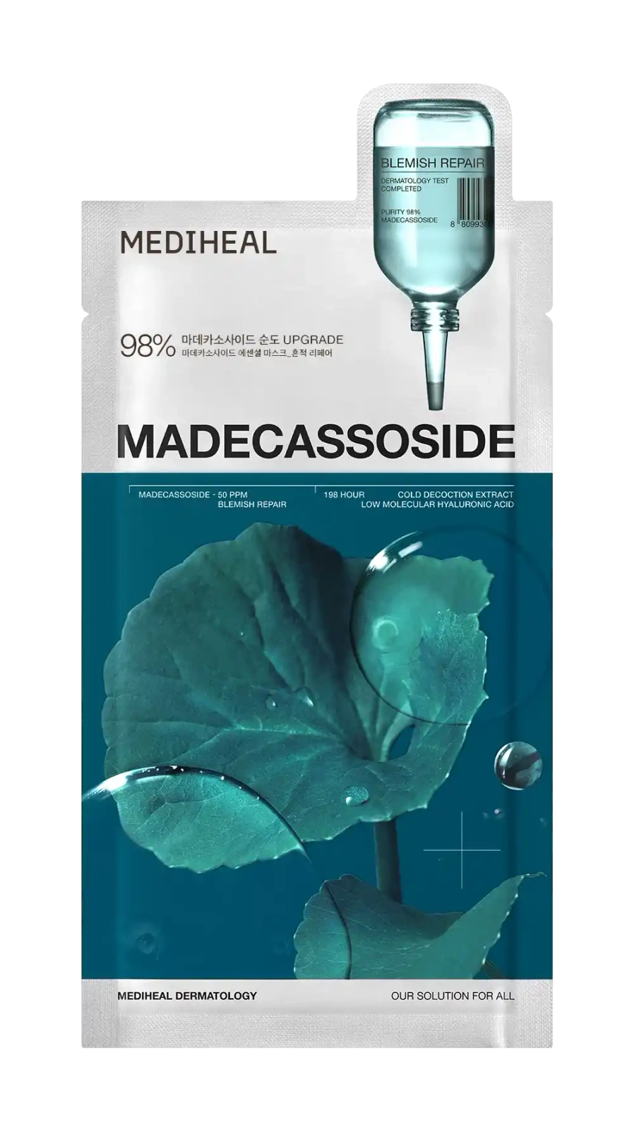 Łagodząco-regenerująca maska w płachcie z madekasozydem. Rozświetla, przywracając skórze naturalny blask i promienny wygląd. Skoncentrowana formuła esencji, którą nasączono maskę, została wzbogacona o innowacyjny kompleks składników aktywnych: madekasozyd, niacynamid, kwas hialuronowy, wodę morską, ekstrakt z wąkroty azjatyckiej, hydrolat z kwiatów róży damasceńskiej oraz ekstrakt z melona.
