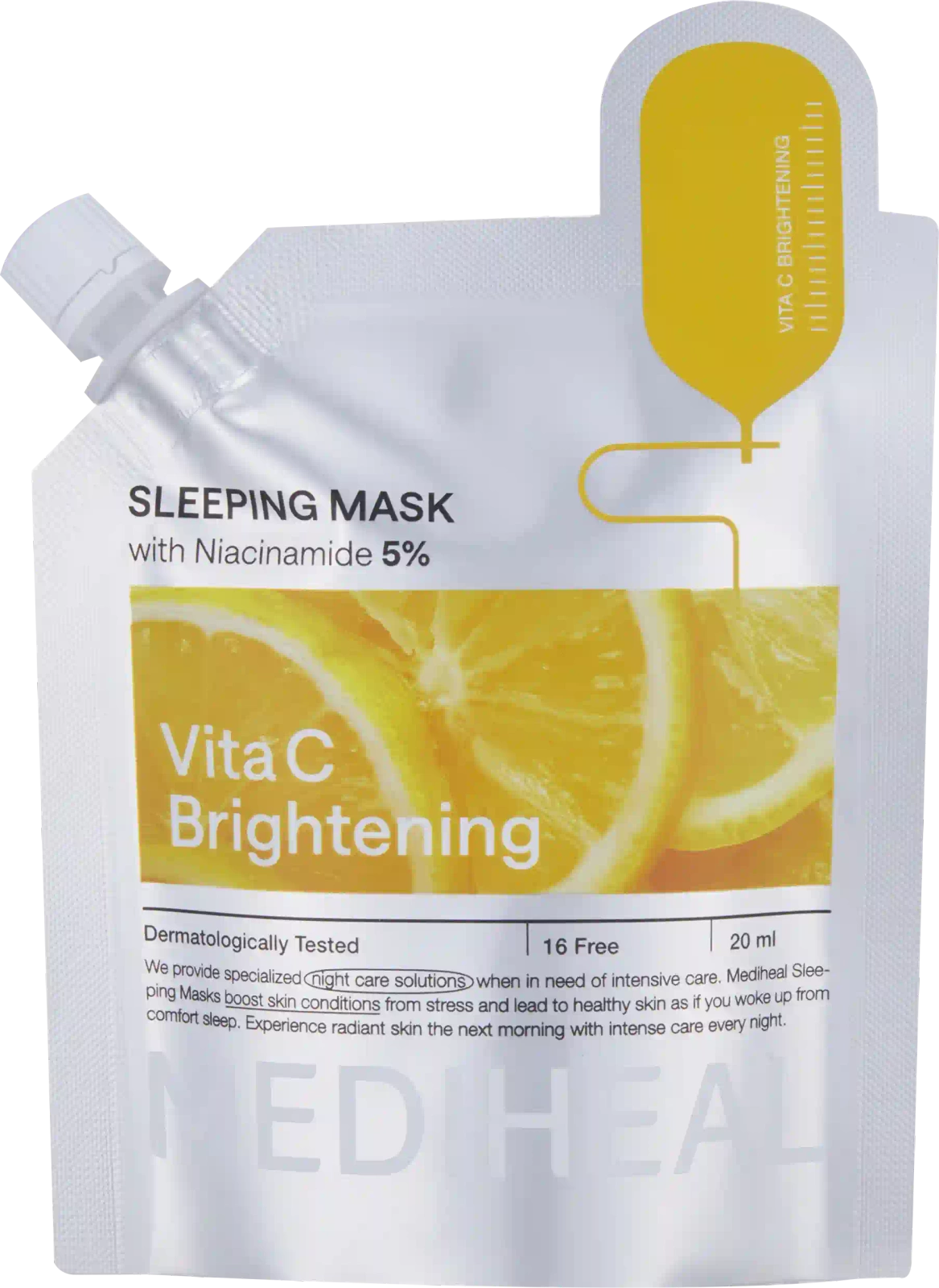 Odkryj lekką, kremowo-żelową maseczkę na noc, która wykorzystuje moc witaminy C, aby rozświetlić, wygładzić i nawilżyć skórę. Stworzona z myślą o cerze matowej i zmęczonej, przywraca jej świeży, promienny wygląd. Wzbogacona dodatkowo o niacynamid, pantenol, ekstrakt z pomarańczy oraz kwasy PHA i LHA, maska głęboko odżywia, delikatnie złuszcza i rozświetla cerę, nadając jej naturalny blask.